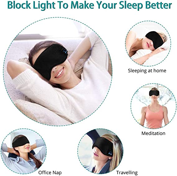 4 tens Sleep Headphones Wireless Bluetooth Eye Mask with Music Travel Sleep Mask Bluetooth 5.0 Wireless Handsfree Sleeping Headphones Eye Mask with Speakers Microphone for Travel Sleeping Music Goggles