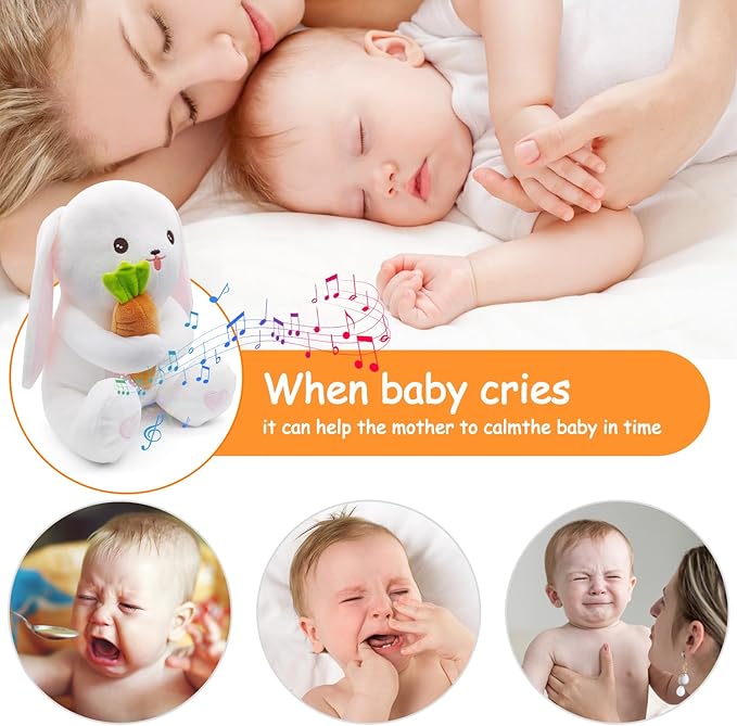 The baby soother Rabbit has 18 soothing sounds, including 13 Lullabies, 2 white noise, heart beat and Shush Sound. Simply pick your desired sound to facilitate a restful night’s sleep – ideal sleeping sound machine for babies and family. sleep Soother Projects soothing images of dreamy starry skies on the ceiling and walls. The colorful stars and moon fill the room, to make your baby feel comfortable and create a sleepy environment. Adjusts for three levels of brightness, to meet your different brightness needs. Sleep soother can detect baby’s crying, music and light will play automatically when baby crying, helps to calm baby down and create a sleepy environment. No need for you to get up to calm your baby multiple times a night.