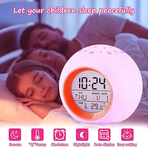 Thank you for reading this post, don't forget to subscribe!Kids Alarm Clock Moon Stars Projector 7 Color Night Light Children Sleep Trainer Alarm Clock