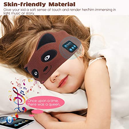 Kids Headphones,Bluetooth Sleeping Eye Mask,Bear Wireless Hands-Free Call Soft Headband with Ultra-Thin Speakers and Mic Children’s Earphones for Girls & Boys, School,Home,Travel