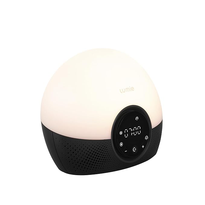 Wake with a gradual sunrise to feel naturally refreshed and wide awake. Choose 20, 30, or 45-minute sunrise and final light intensity. Include a wake sound for an audio alarm. Tap-control snooze.