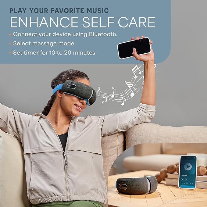 Does your job require extensive screen time? Suffering from headaches, puffy eyes, and dark circles? LifePro heated eye mask for migraines is designed while keeping your needs in mind, so that it might help relieve your stress. With 4 massage programs and 2 program modes, the LifePro FSA/HSA-approved migraine relief mask is the ideal companion in any setting, from your lounge to travelling abroad. Our heated eye massager for migraines is always ready to go. Are you a music lover? Our Bluetooth-compatible sinus massager can easily connect to any Bluetooth device, so that you can listen to your favorite music and even assist you in improving your sleep quality