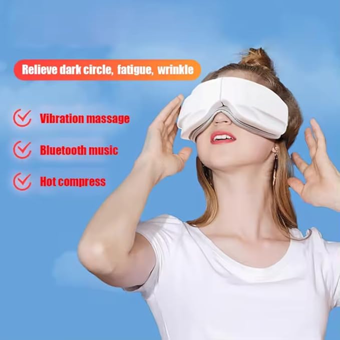 The eye massager mask boasts an ingenious design, making it an ideal travel companion. Its ability to effortlessly fold into a compact form allows you to carry it to the office, board planes, or during travels. Moreover, the adjustable headband ensures a comfortable fit for users of varying head sizes, guaranteeing everyone can indulge in a relaxing massage experience. The eye massager has smart mode/relaxation mode/heating mode to choose from, which can make the eyes more relaxed and relieve eye fatigue. You can choose the mode you like. Groove design perfectly fits the eyeball, offering an amazing massage. The eye mask massager is low noise (≤55db), face-friendly with an adjustable headband (15- 26 inches) to fit most faces. Comfortable to wear and supports playing your own music.