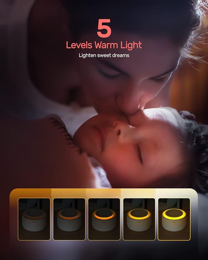 Nuliie white noise sound machine has 6 playlists: whirring fan, white noise, forest, ocean, rainfall, and fetal sound. Each of the playlists has 5 soothing tracks with the option to customize the volume level. It will give you perfect white noise to help you sleep faster. This sound machine has an excellent RGB light with two modes. The regular mode gives you the option to adjust the brightness and change the color to your desired color, and the Breathing mode will go through all the colors. This baby noise machine is a perfect sleep aid that will mask any background noise and help your baby get sound sleep. With a sound decibel of up to 100db, it is well equipped to conceal any background noise. The Nuliie noise machine also works perfectly for adults.