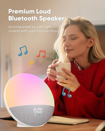 Simulated sunrise lights from light red to bright daylight, to wake you up gently. The loud alarm clock, ranging from U0-U30 in volume, is perfect for deep sleepers and those who have trouble getting out of bed. E-Life has 15 built-in sleeping sounds, including white noise, natural insects and birds, piano music, etc. The duration of the sleep sounds can be set for 30 minutes, 45 minutes, 60 minutes, or all night. The sunset lights help you relax and fall asleep peacefully. This device is also a home indoor Bluetooth speaker. Built-in 2 drivers and 1 pass radiator to enhance the bass, it pumps out loud, stereo sound with decent quality. You can enjoy your favorite music, podcast, or radio.