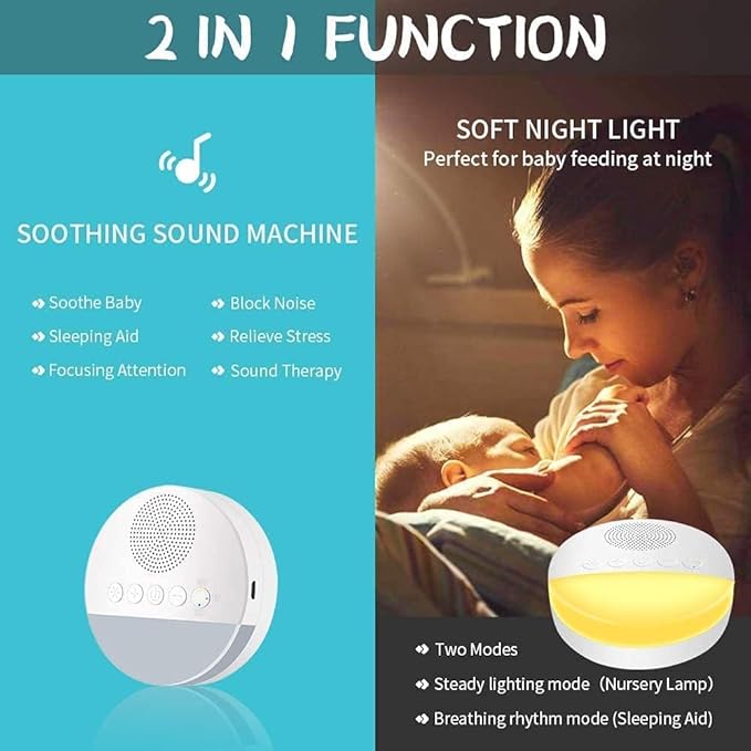 Experience the perfect combination of sound and light with the Jemey Sleep Aid. This device allows you to customize the sound, volume, light mode, and play duration, while the auto-save feature retains your preferred settings for convenience. Note: Please ensure full charging before first use. Create a relaxing and comforting environment with 20 soothing sounds, including 3 white noise variations, 3 fan sounds, 3 rainy sounds, 3 wave sounds, 2 lullabies, water stream sound, campfire sound, birdsong, cricket sound, tick-tock sound, and heartbeat sound. Perfect for soothing babies, aiding sleep, relaxation, meditation, yoga, or napping. The sleep sound machine offers a 15, 30, and 60-minute auto-off timer, conserving energy and ensuring efficient use. It can also be set for continuous play. The memory function retains your last sound and volume settings, allowing you to seamlessly resume your preferred experience.