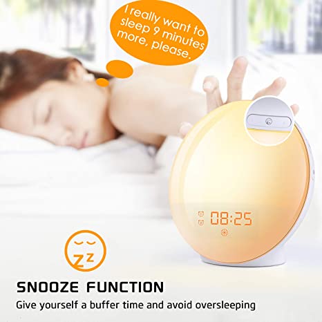 . Upgraded snooze function which gives you extra 9 minutes of sleep after the original alarm. 20 levels of brightness allows you to adjust the wake up light to proper brightness at bed time.