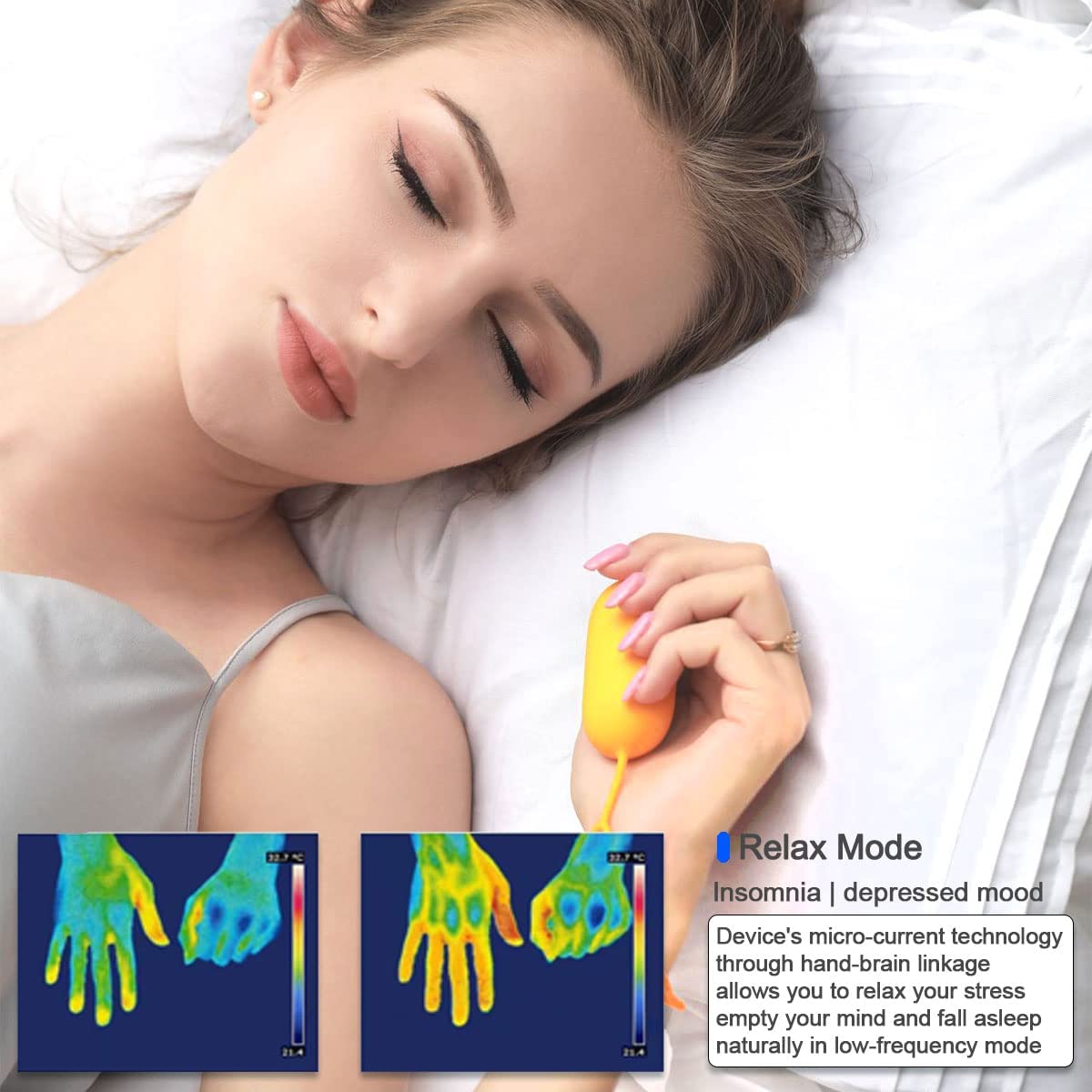 Sleep aid for adults, the device is made of very smooth silicone material, with an anti-drop belt, using micro-current technology hand-brain linkage, which can be adjusted according to different people. Daily relaxation, easier to enter deep. Good to help you calm down, calm the mind and relax the body to sleep. When using this device, the metal bar touches the palm of your hand hand-brain linkage attention shifting to ease your mind and calm your body This product can also focus attention. Use the high frequency mode sleep aid in the office or study area, the right hand can help you focus more on what is important and complete your work efficiently