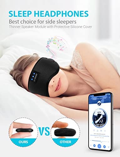 【Sleep Headphones and Sleep Mask 2 in 1】Bluetooth Sleep Headphones allows you to listen to your music when sleep without having to wear additional headphones and help you sleep better protect you from being disturbed by outside noise. Built-in microphone to let you won’t miss any callings. Suitable for home, travel, yoga or any place need close your eyes. Also helps with insomnia, relaxation, meditation and more.